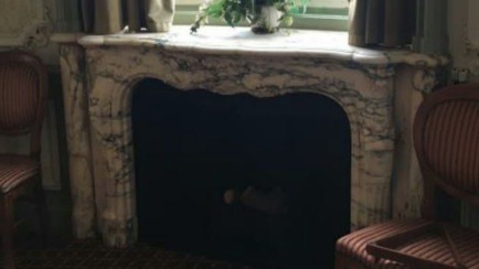 The below image perfectly demonstrates my belief that indeed early Georgian interiors remain within Esher Place House and are not necessarily situated with their original purpose in mind, but have been incorporated into the interior design for their aesthetic contribution and possibly in recognition of their provenance – a chimneypiece beneath a window is a fair case in point!
