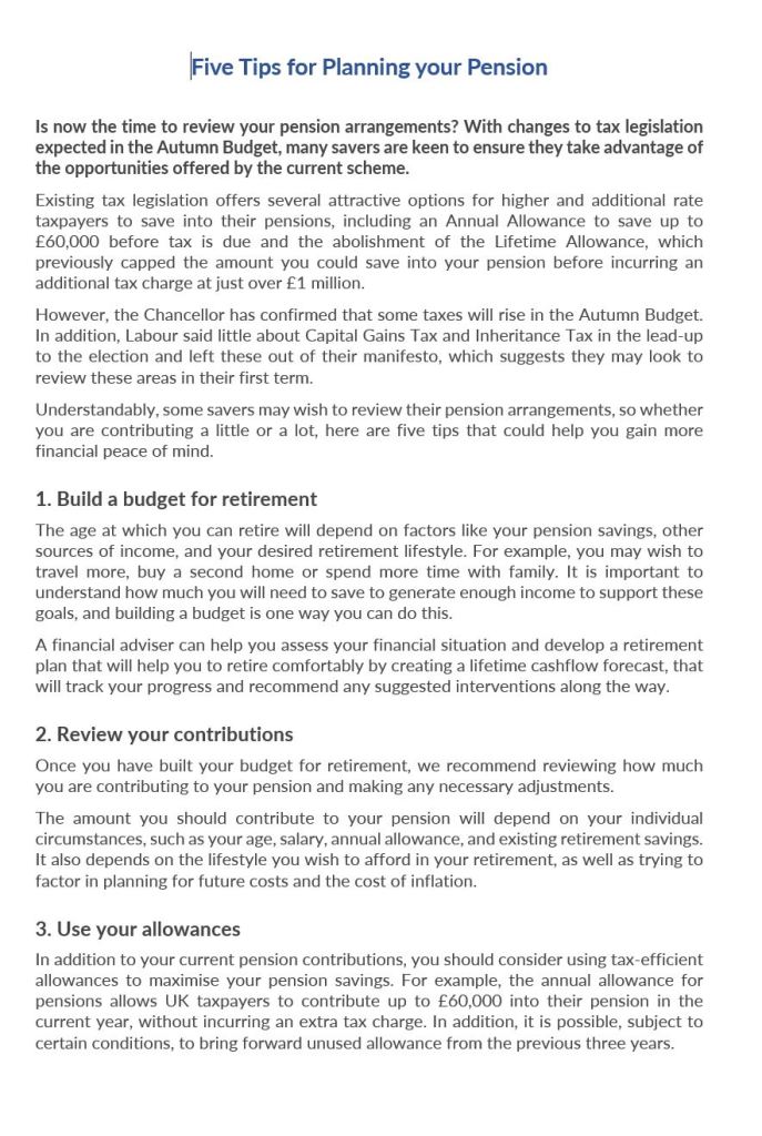 Five Tips for Planning your Pension by Killik & Co (Advert)