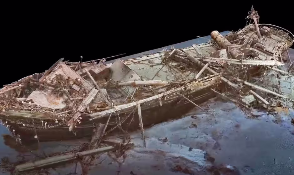 3D scan shows Endurance lying 3000m below sea level. Image Flaklands Maritime Heritage Trust/National Geographic
