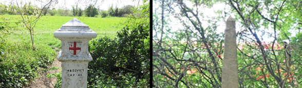 Type 2 is 4.2 metres high and made for the railways. Other types can be found by canals and railways. An example of a stone Type 2 post is shown below with a train just seen in the background.