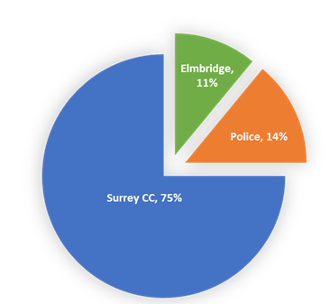 Although your Council Tax is collected by Elmbridge Borough Council it is then distributed as follows……