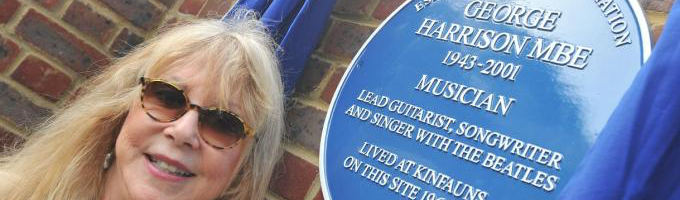 - George Harrison MBE 1943-2001 Lead guitarist, songwriter and singer with the Beatles. The plaque was erected on 16 Claremont Drive the site of “Kinfauns” his home from 1964-1970. The plaque was unveiled by Pattie Boyd the former Model, who was married to Harrison from 1966 – 1974 (Erected 2017)